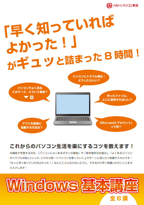 そこでおすすめなのが、当教室の 「Windows 基本講座」 です。